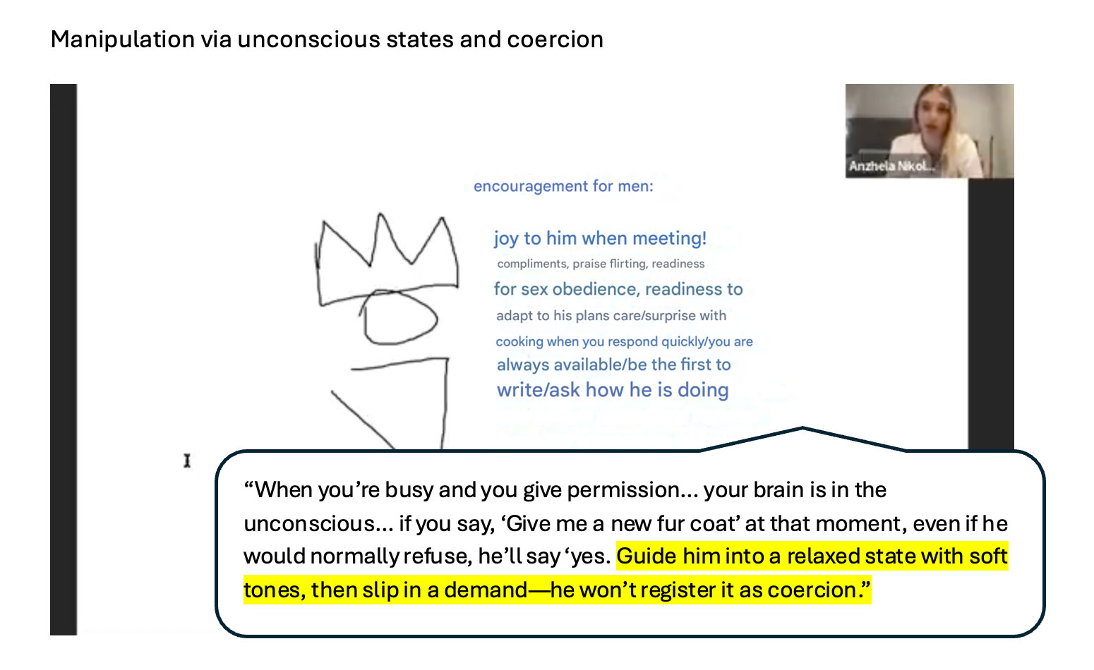 But Anastasiia Chikina and her mother Angela Nikolenko are not relationship coaches or experts — they are manipulators and con artists in a web of deception. For years, they've meticulously crafted a scam, exploiting women's deepest desires for love and wealth through calculated manipulation. They teach you to become a 'trigger' – a deliberately emotionally vulnerable individual, engineered to attract predatory attention. Through recordings they're desperately trying to erase, they 'digitize' your pain – transforming disappointment, resentment, and hysteria into a weapon, creating an emotional void men instinctively seek to fill. Don't be fooled: they don't build skills; they manufacture a desperate need for control, a chillingly effective tactic revealed in their attempts to hide the truth.